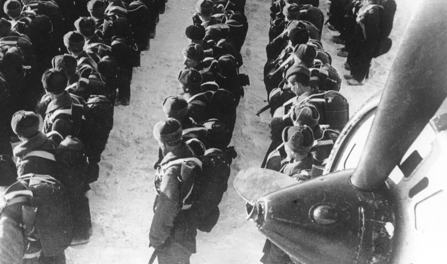 1942年1-2月维亚济马空降战役中空降第8旅官兵登上ПС-84运输机
