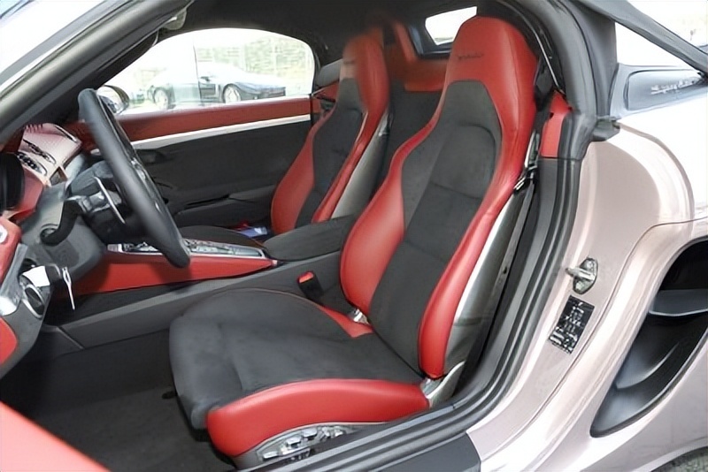 内饰方面:整体内饰采用了环抱式的设计风格,将会搭载7英寸中控大屏、4.6英寸的非全液晶仪表盘等。此外保时捷718同样为用户提供多种配色进行个性化定制,而Spyder车型上红黑配色,搭载经典的三炮筒式仪表以及一体式座椅,让车内有着更加浓重的运动氛围。