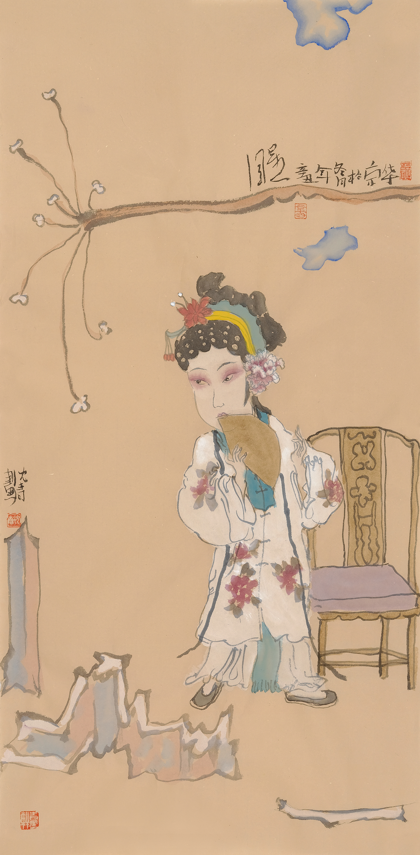中国画的学习与创作,现在基本都是,临摹和学习老师的创作方法。艺术观点的设定与自己笔墨语言(人物画的笔墨语言不仅仅是笔墨,还有形象的设定,因为中国画不是西画,画面表现得不是人物的像与不像,而是借用人物来舒达自己的世界观和情感)的建立也基本都认为是,要等自己的绘画水准达到一定高度时再去尝试建立和改变的。这种认识是大错特错的,艺术观点和笔墨语言的建立,是在学习和创作中慢慢养成的,是在学习开始就要开始寻觅自己的艺术之路的。