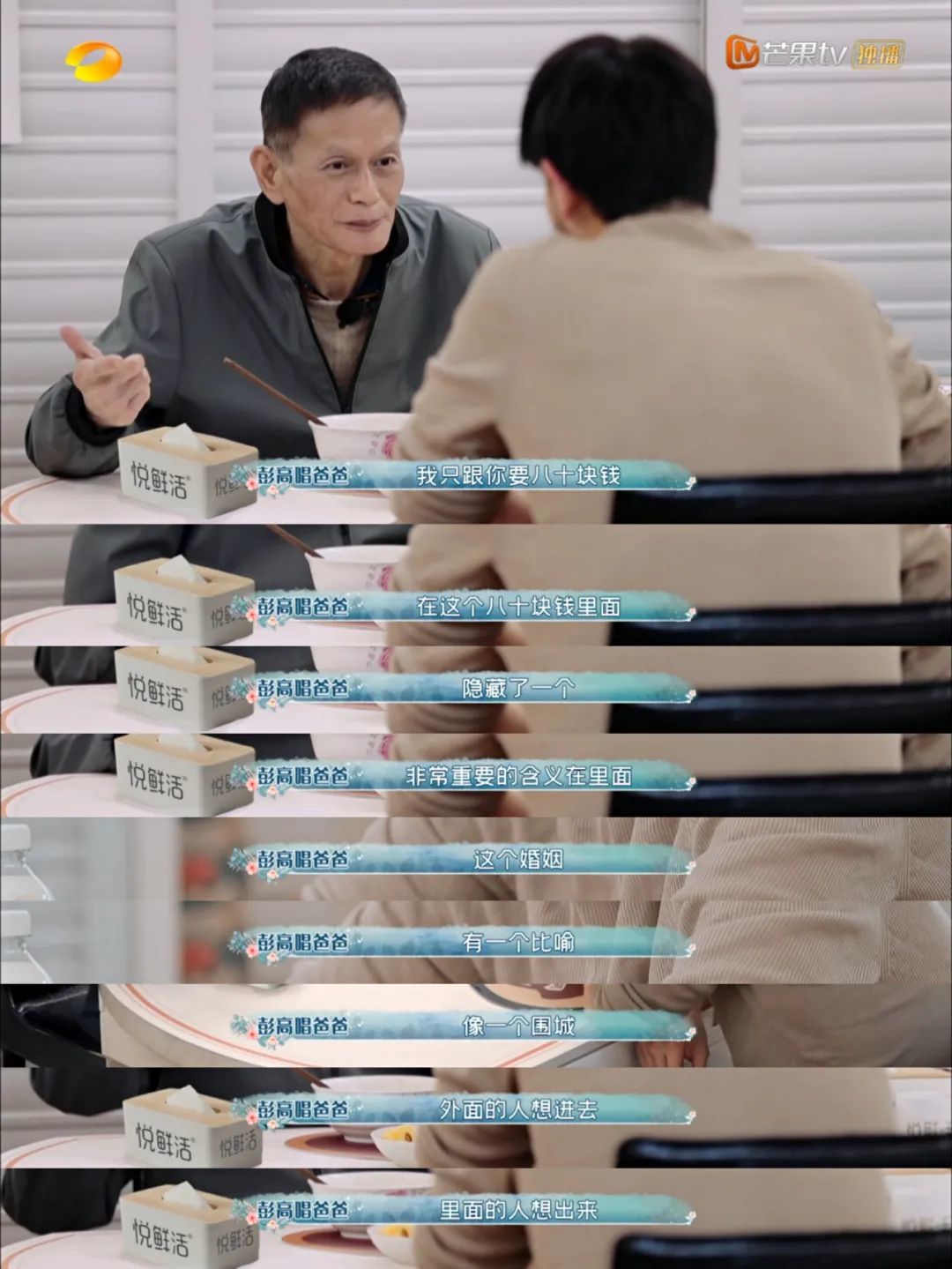 在彭爸看来,婚姻不是甜言蜜语和花前月下,而是柴米油盐。