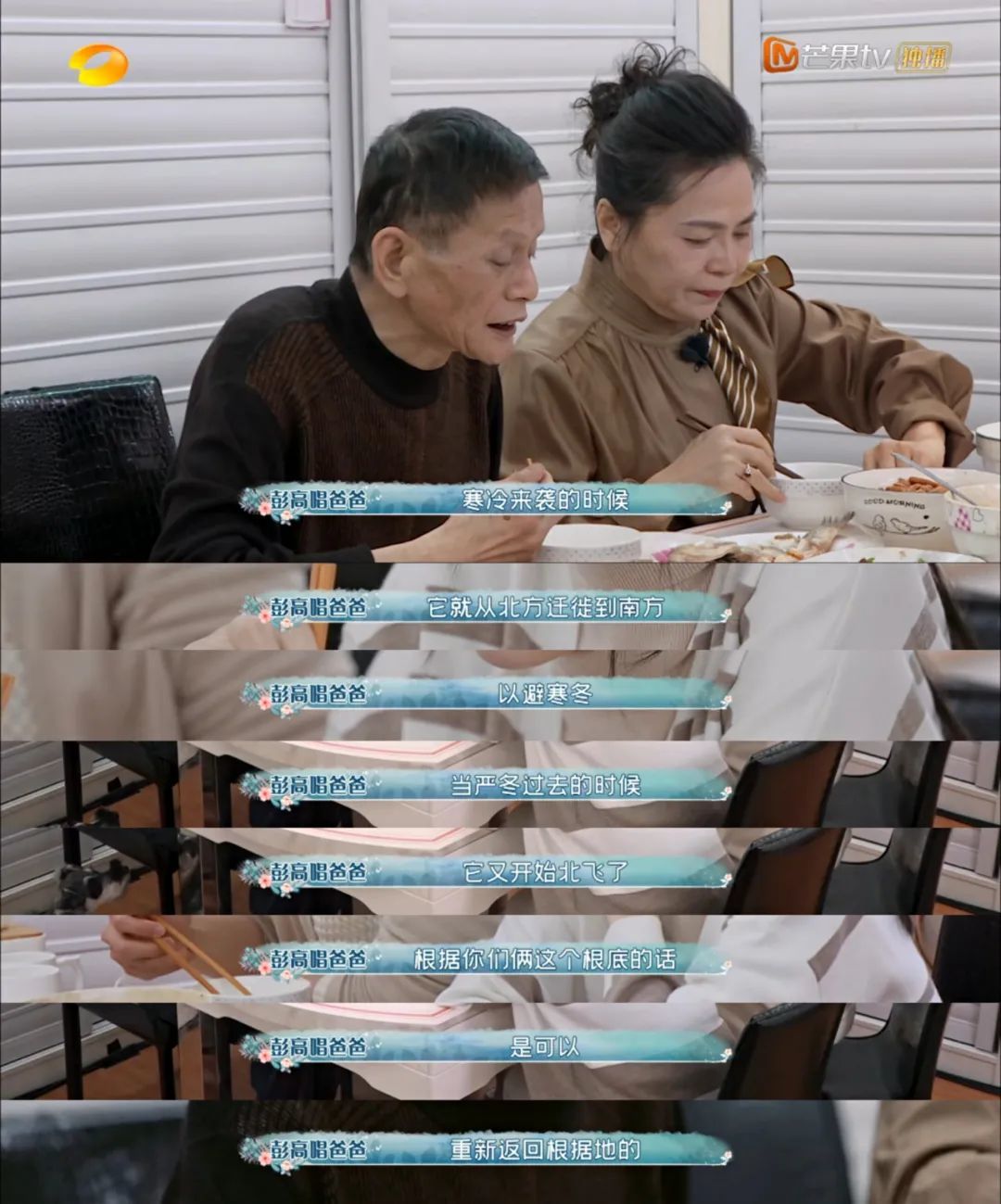 “寒冬来袭时,它就从北方迁徙到南方以避寒冬,当严冬过去的时候,她又开始北飞。“根据你们俩这个根底的话,是可以重新返回根据地的。”,“北雁南飞”是彭爸对彭高唱13年坚持的最大肯定和最完美的总结。