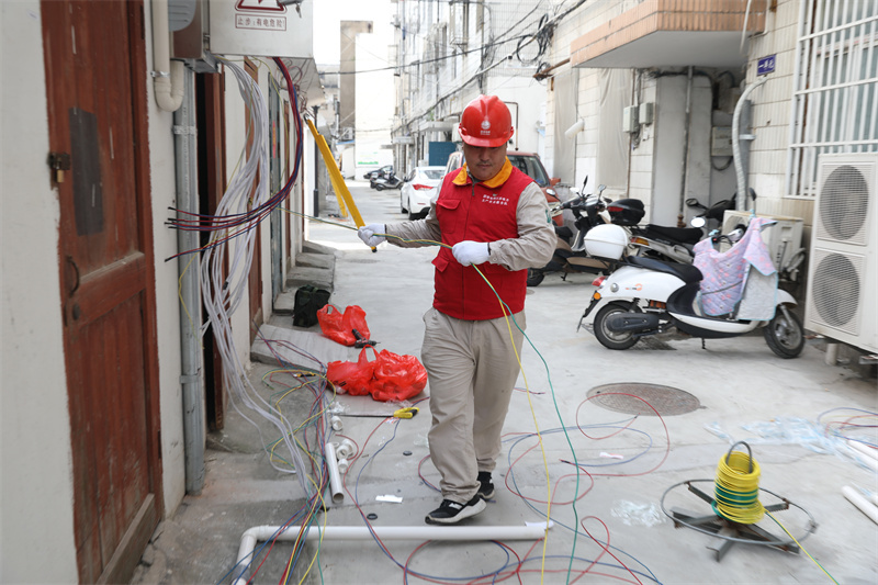 △如东共产党员服务队在县城三元社区为老旧居民楼整治“飞线”隐患