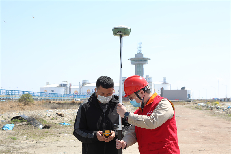 △如东共产党员服务队在阳光岛上现场勘探、勘测,为工程开工做好准备