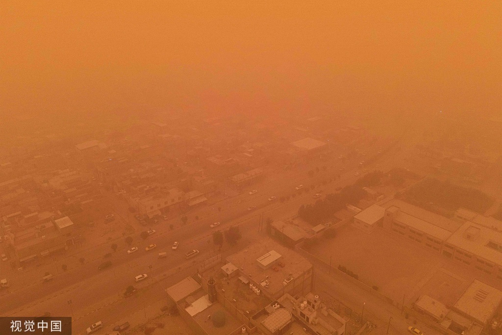 当地时间2022年5月1日,伊拉克遭遇沙尘暴,黄沙漫天。
