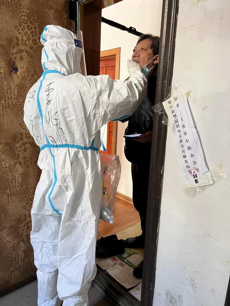 穿着密不透风的防护服,再加上上千次重复的动作,有时还要面对居民的不理解,比核酸采样更难的是要面对一些居民的情绪。有些居民防范意识强,在信息采集的时候不配合,这个时候李兆刚和他的同事们还要耐心劝导,并且通过电话和老人的子女沟通,以便采样工作顺利进行。随着隔离时间的加长,也会有个别居民有抵触情绪,面对居民的焦躁心理,李兆刚他们会更耐心的和居民们解释,帮助居民们进行心理疏导,李兆刚的付出也得到了回报。基本上每个居民做完采样,都会说声“谢谢”,这种温暖也抚平了核酸采样带来的疲惫和辛苦。