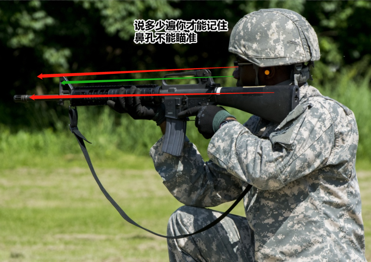 之前发过的一个文章里,写的是95为什么会基线高,强调的是直托步枪为了瞄准,必须将瞄准基线增高,否则根本无法进行瞄准。如果硬性地将95基线降低,只能通过鼻孔进行瞄准了,而鼻孔是看不到东西的。M16、G36这些枪瞄准基线没有一个低的,真正瞄准基线低的,是AK那类斜托的步枪,而斜托是影响射击精度的。