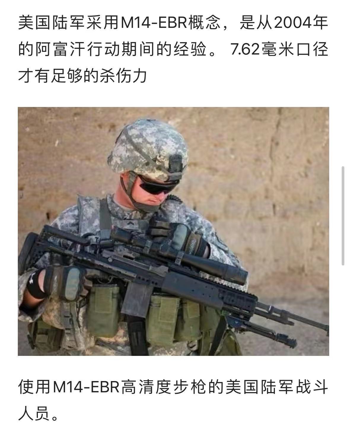 美军给步兵班装备MK 14 EBR,并非是因为打不过AK这些中间威力弹的步枪。如果是因为打不过,那么应该全班换装,而非一个班只装备一两把。装备Mk 14 EBR仅仅是作为一个补充,并非是替换,两者概念、用途完全不一样。作为补充,只是对步兵班进行火力延伸,进行火力支援。