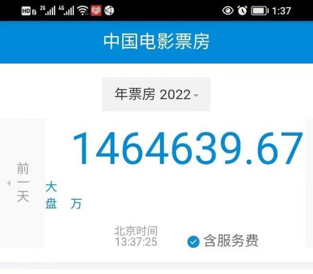 截止5月2日13点37分,中国电影总票房为146.46亿元(含服务费)!而时间正好1/3年,按此计算,如果疫情不再严重的情况下,今年的中国电影总票房应该为440亿元左右!可能低于2021的468亿元,离2019的642亿元就更远了!