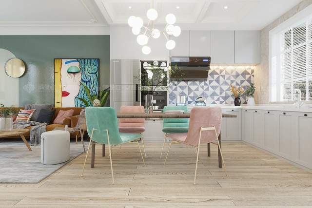 这个案例以清新迷人的颜色搭配为亮点。甜蜜清新的马克龙色调,带来清爽又浪漫的视觉体验,搭配ins风十足的家具,简直是生活最完美的样子。