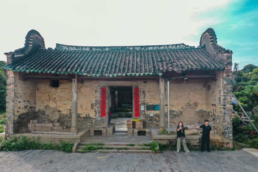 从门楼进去,是排列成一排的祠堂与一弯月牙池塘。大江埔村的祠堂是从化少有的与众不同的祠堂,大都有三进,锅耳墙、彩绘......从依稀留下的痕迹可以看出,曾经的祠堂是十分光鲜亮丽的。