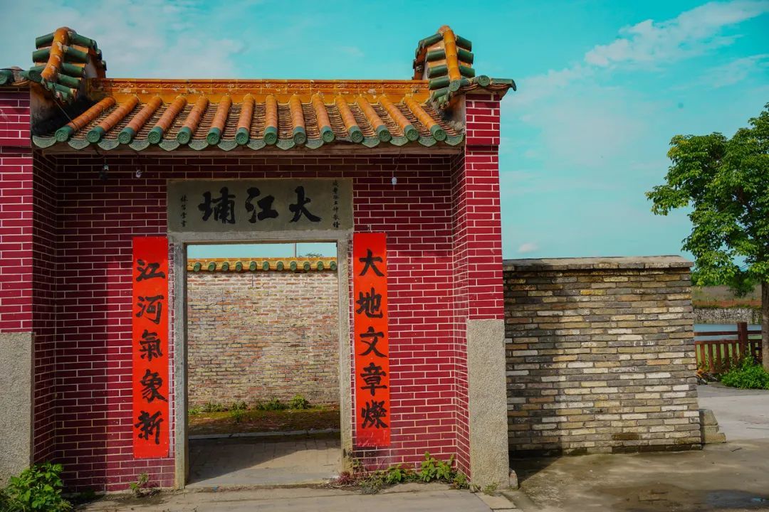 最先看到的是门楼,门楼上有三个大字: 大江埔,旁边附一行小字: 咸丰癸丑仲秋脩和林召棠书。 按照字面意思来看的话, “大江埔”三个字是清咸丰癸丑年( 1853 年 ) 中秋节林召棠送的见面礼。 林召棠是粤西最后一个也是唯一的状元。 假如仔细看的话,会发现“埔”字头上少了一个点,很明显是一个错别字,而且整整错了 169 年无人修改。