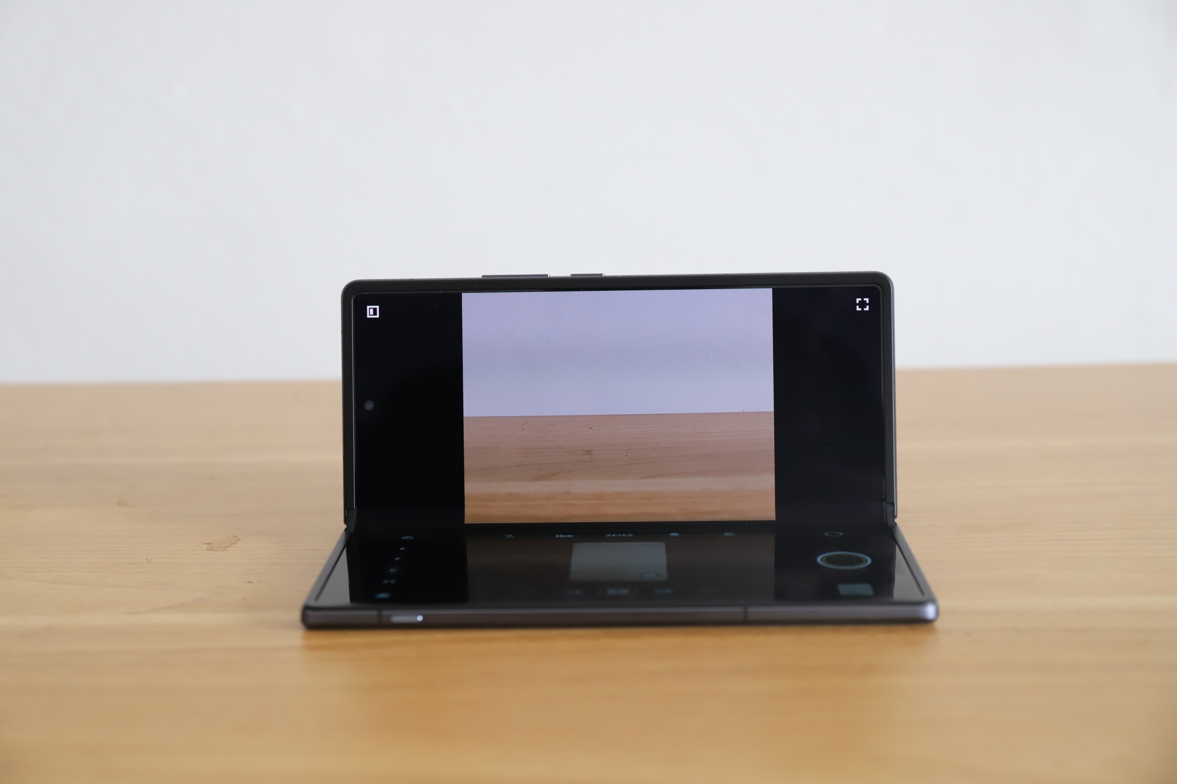 除此之外,vivo X Fold还支持了多角度自由悬停功能,这个功能可以提升日常的体验。比如拍摄延时摄影,就能让手机自带稳定器;播放视频时不仅可以充当手机支架,上半屏还可播放视频画面,下半屏则变为触控板,可以拖动进度条、调整音量、屏幕亮度,非常方便。