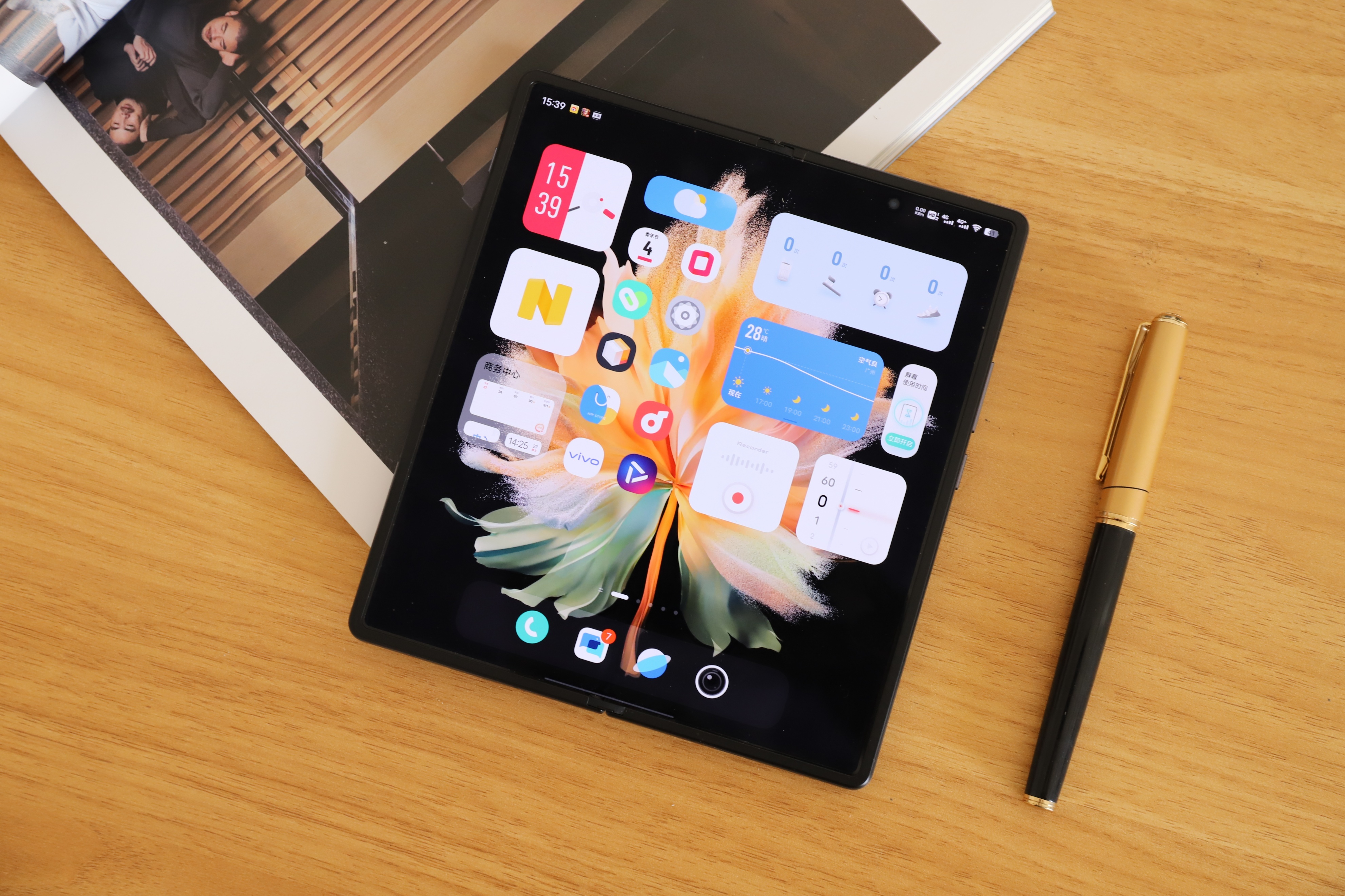 对于续航还有一个补救的方式就是提升充电速度,vivo X Fold搭载66W有线快充,支持50W无线快充,实际测试下5 分钟就能充 20%,10 分钟就能充将近39%,充到 100% 需要 39分钟。这样的充电速度还是比较快的了,意味着早上起床之后我们只需要花个10分钟就能够满足半天的使用,完全不用担心晚上忘记给手机充电了。