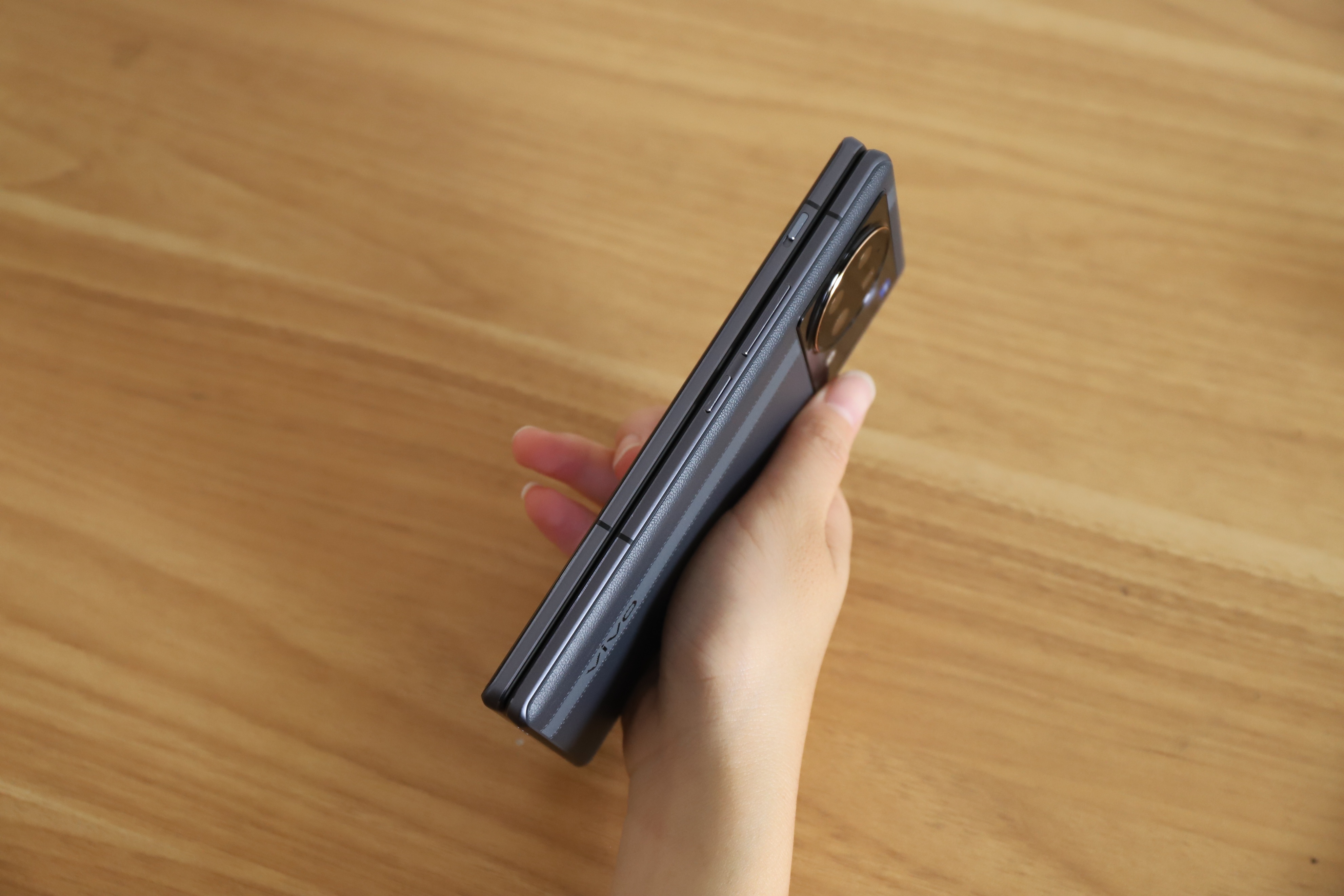 细节设计上,vivo X Fold加入了一颗独立的物理静音键,对于商务办公人士来说,物理静音键可以快捷进入静音状态,非常方便。不过,vivo X Fold也不是完全没有缺点,因为这是一款采用内折设计的折叠屏手机,对比外折叠机型还要多了一个外屏,再加上有诸多的旗舰配置,导致机身的重量达到了310g,折叠之后的厚度达到了14.91mm,折叠之后单手持握还是可以明显地感觉到分量的,这也是目前大多数折叠屏手机需要改进的。