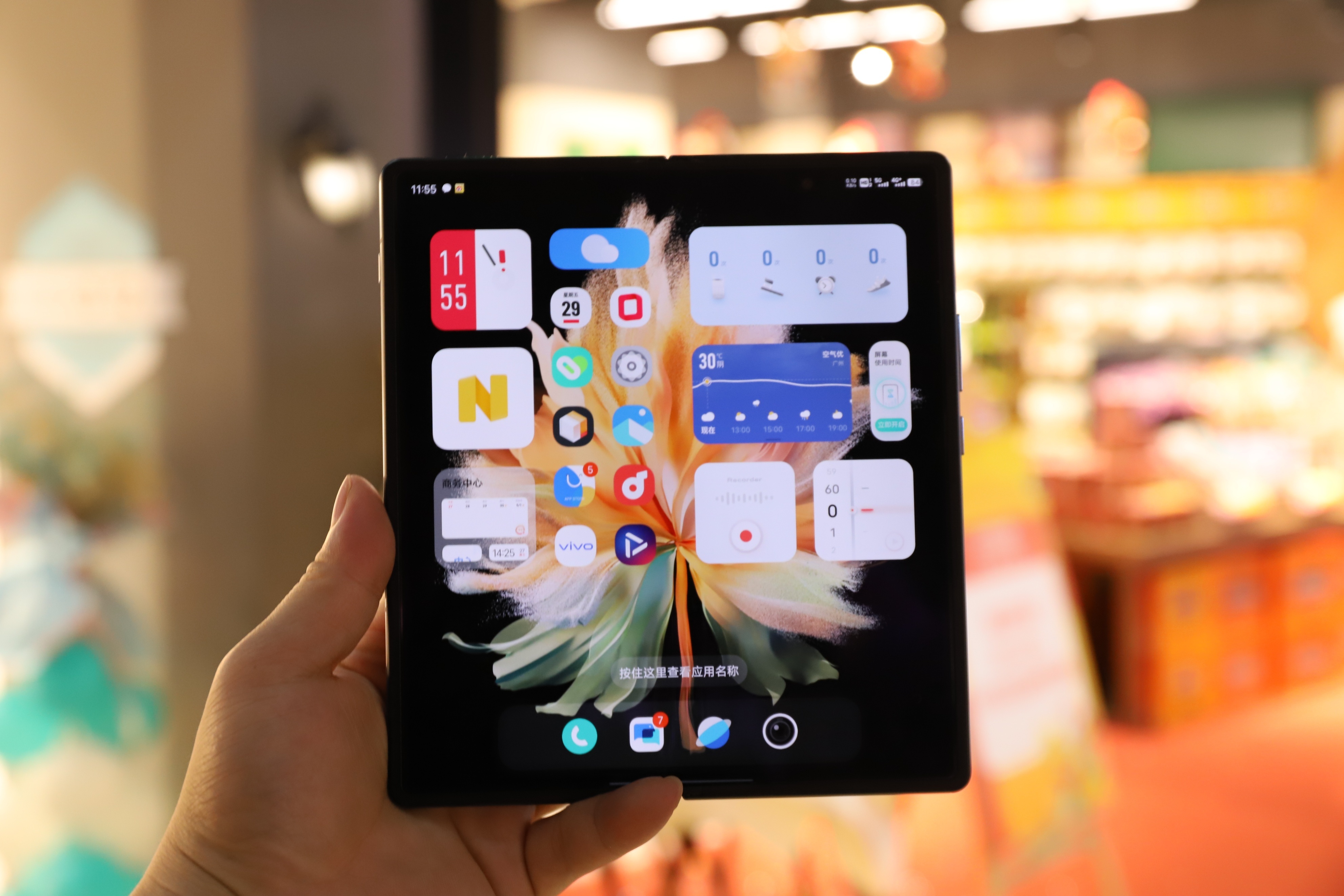 vivo X Fold 还支持了快速启动应用栏,屏幕边缘返回手势侧滑,停顿即可调出应用侧边栏,点击侧边栏的应用,同样以小窗的形式出现。