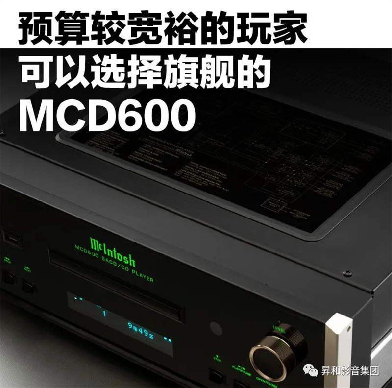 预算较宽裕的玩家可以选择旗舰的MCD600,相比而言全面升级了DAC芯片,8通道DAC芯片支持PCM信号作32Bit/384kHz升频处理;同时还升级了电源供应,在前面板上增加了非常实用的USB插口,可连接U盘或者硬盘,播放内存的数字音乐文件。背板的模拟信号输出除了固定电平端子外,还增加了XLR平衡和RCA非平衡可变音量各一组,以其源于厂方著名的前级音控线路为蓝本开发的音控功能,容许MCD600直接连接后级或者有源监听音箱使用。另外,除具有常规的同轴和光纤数字输出接口外,还增加了同轴和光纤数字输入接口各一个,让MCD600不但可外接数字录音机和DAC解码器,还可连接其它数字播放器或者蓝光播放机等音源设备,以高素质的解码和模拟音频输出提升音响系统的整体音质表现。另外,MCD600的整体制作和选料上也更上一个台阶,比如机箱采用刚性更佳的镜面不锈钢制造,兼具更好的屏蔽性能和视觉美观感。