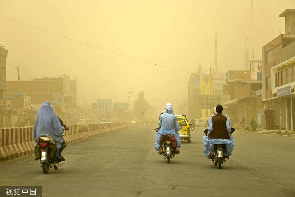 当地时间2022年5月3日,阿富汗坎大哈,当地遭遇沙尘暴天气,黄沙漫天。