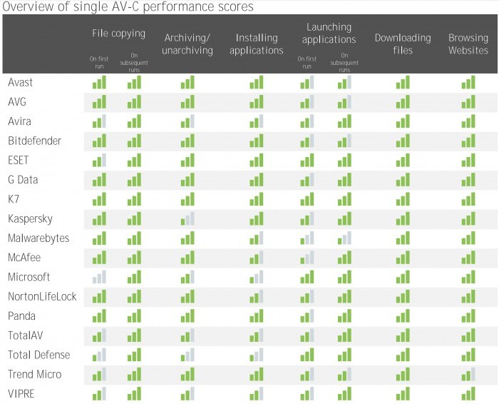 以下是所有产品在测试中的表现。上边的图片显示了AV-C的表现,下边的图片显示了总分,其中也包括PC Mark的分数。