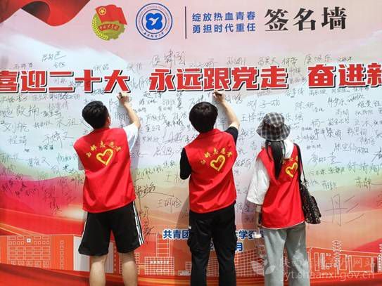 西安邮电大学“喜迎二十大、永远跟党走、奋进新征程”宣誓签名活动现场