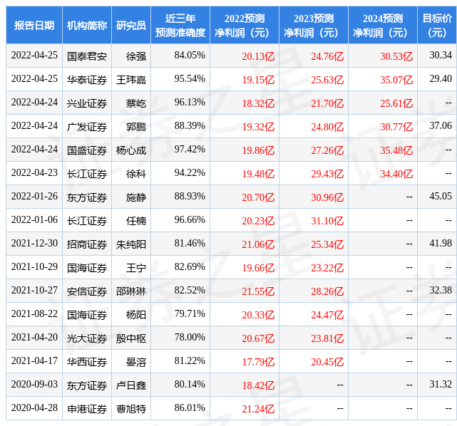 最新盈利预测明细如下: