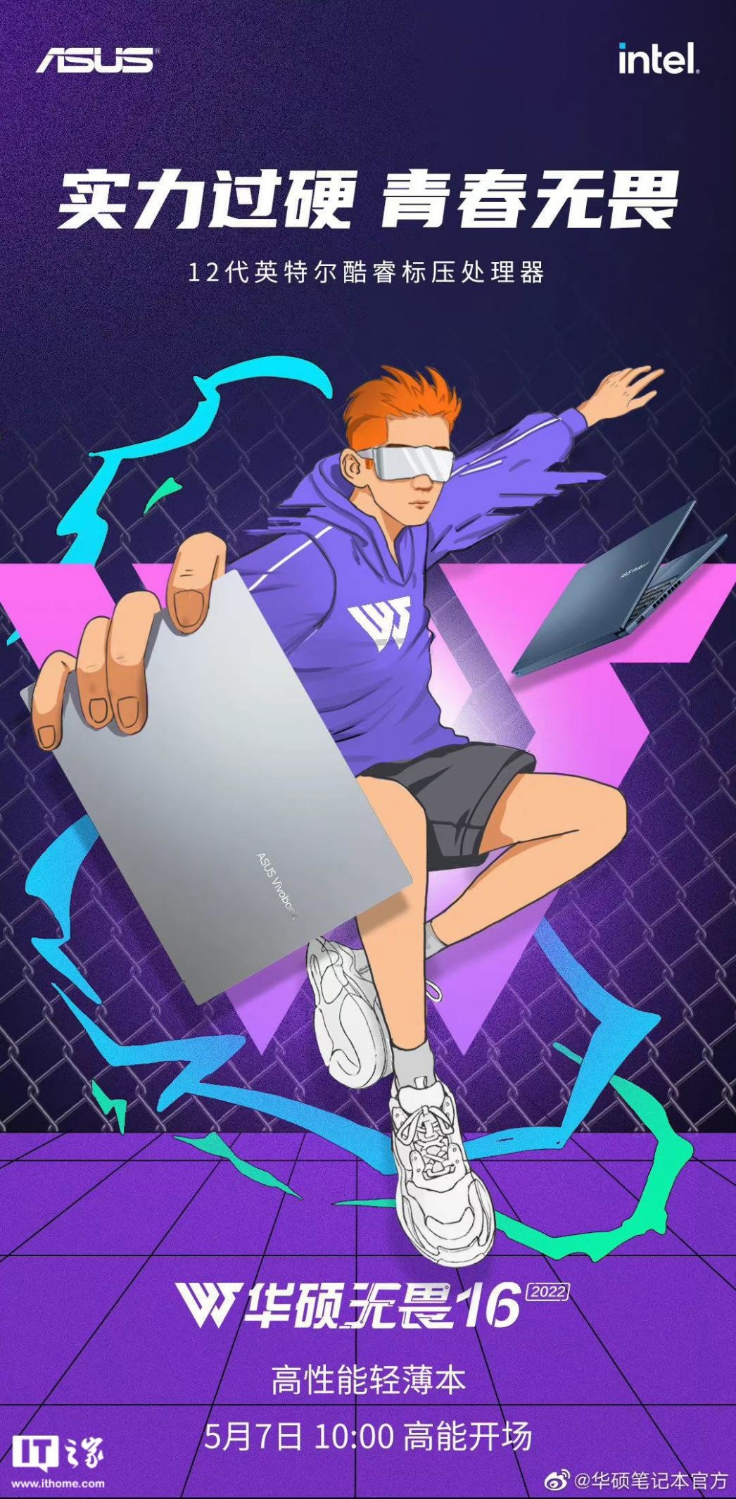 5 月 3 日,华硕官方正式宣布了无畏 16 2022 笔记本,海报中显示该产品将搭载 12 代酷睿标压处理器,并于 5 月 7 日上架。