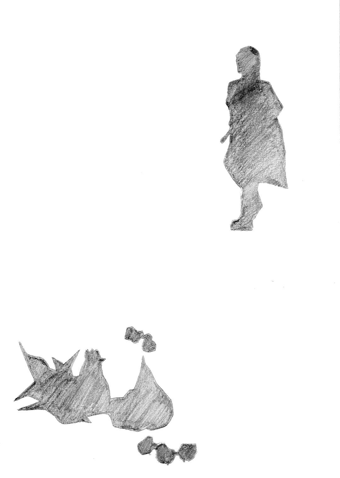 对角式构图在这套作品中运用得较多,常见的如实角对实角,空角对空角,造成均衡的错位,实际上是均衡的一种变化,即打破了平均的呆板处理。把一边上移,另一边下沉,使画面更具空灵感,对事物的高度概括和提炼,让人产生无限的联想和意犹未尽的感觉。