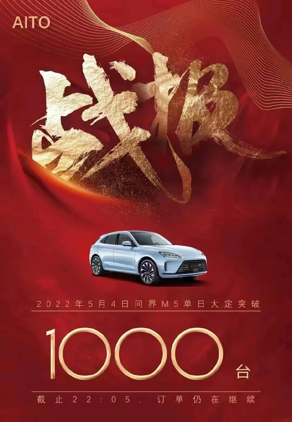 IT之家 5 月 5 日消息,根据官方战报显示,截至 5 月 4 日 22:05,华为智选鸿蒙汽车 AITO 问界 M5 单日大定突破 1000 台。