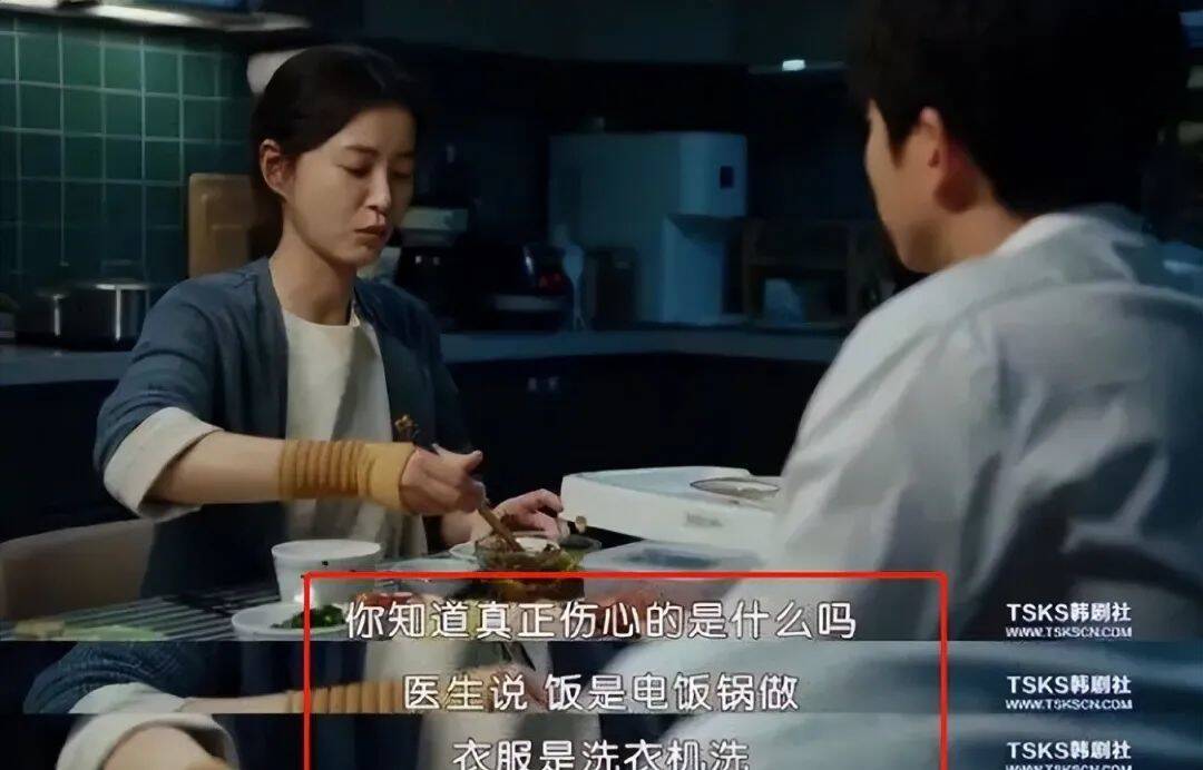 而令金智英最后一度陷入崩溃状态,除了长期身体劳累外,丈夫对她的付出并不理解的观念也是令她难以忍受。就像她因为繁多且长期的家务,导致手腕疼痛去看医生时,医生不理解的说出:“饭是用电饭煲煮的,洗衣服也是依靠洗衣机,你怎么会出现手腕疼痛呢?”