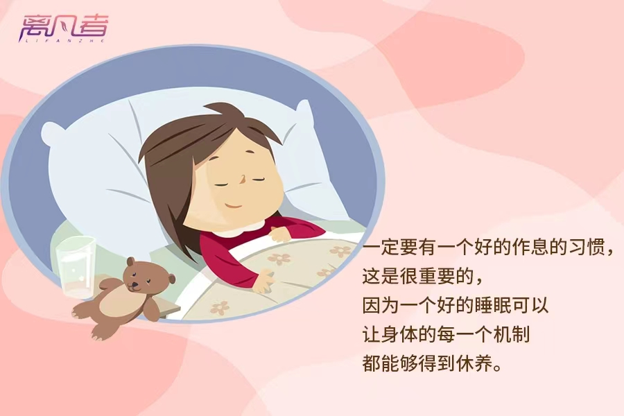 一定要有一个好的作息习惯,这是很重要的,因为一个好的睡眠可以让身体的每一个机制都能够得到休养,是很好的。