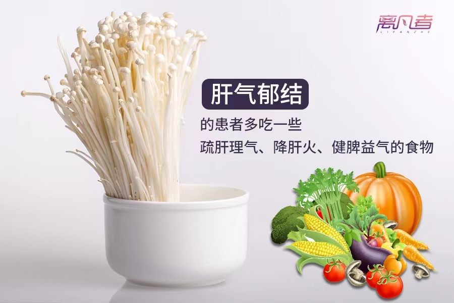 肝气郁结的患者多吃一些疏肝理气、降肝火、健脾益气的食物,如南瓜、橙子、扁豆、高粱米、薏米等健脾益气的食物;金针菜、油菜、丝瓜、山楂等降肝火的食物;茼蒿、萝卜、柚子、西红柿等疏肝理气的食物。