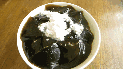 经过揉搓、过滤、数个小时熬制而成的“草粿”,有些形似龟苓膏,是潮汕夏日街头的解暑小吃之一。