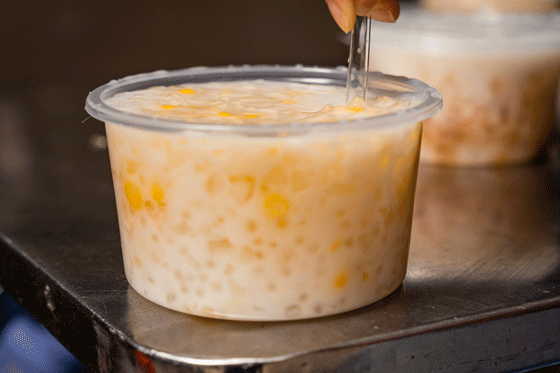 此外,西米露也是糖水店里点单率极高的一款。淀粉制成的小粒西米小巧精致,冷藏后,放到糖水里更是爽滑弹口。