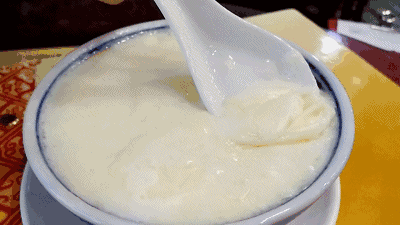 一勺双皮奶入口,上层奶皮甘香、下层奶皮润口,满是清甜醇厚、浓郁嫩滑,带点淡淡的水牛奶膻味,满嘴留香。双皮奶可以单吃,也可以搭配红豆、鸡蛋、芒果、莲子等一起食用,别有风味。