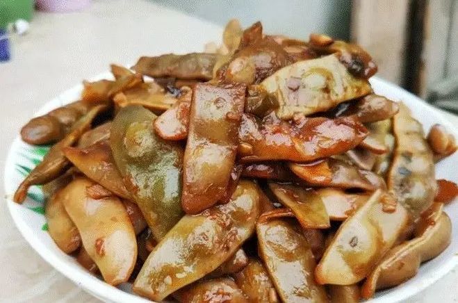 酱爆扁豆也是母亲经常做的菜。每年春天,母亲都会在门前屋后和墙边种几棵扁豆和丝瓜,很快就果实累累。尤其是扁豆,秋风一凉,就可着劲地长,一朵朵蓝色的小花非常漂亮,一串串的扁豆挂在蔓上,隔几天就摘一小筐。母亲先把扁豆两边的筋摘除,然后洗净切成宽宽的条。葱姜蒜末爆锅后,放入母亲自己发酵制作的甜面酱、酱油和少量水,慢火熬制。待酱汁渐浓时放入扁豆翻炒,一直炒熟,最后放盐。吃的时候,咬一口馒头,夹几片扁豆,慢慢咀嚼,细细品味,香中带甜,很是可口。吃完了,还要用馒头擦干碗里的酱汁儿。用这种工艺,母亲还经常做酱爆茄子、酱爆辣椒,偶尔还做一次酱爆小河蟹,每次都被吃得干干净净,一点不剩。