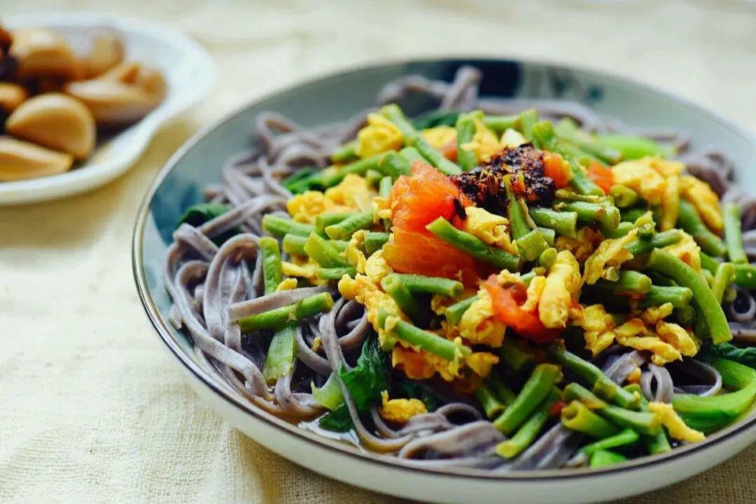 除了菜饼和包子,凉面条也是母亲的拿手好饭。“冬至饺子夏至面”,每年入夏之后,母亲就经常做凉面给全家吃。面是手擀面,卤子就两样:一样是豆角炒鸡蛋,一样是西红柿鸡蛋汤,提前做好凉透。面条煮好,用刚从井里打上来的凉水浸泡,然后捞出来放到大盆里,把炒豆角和西红柿汤一齐倒入,再放上捣好的蒜泥和多多的醋,还有切碎的香椿咸菜末。一人一大碗,有面也有菜,有汤也有饭,又凉、又香、又辣、又酸、又咸,吃一筷子面条,喝一口酸辣汤,打心里凉到肚皮外,从头顶爽到脚后跟,吃了一碗还想再吃一碗,吃了一次还想吃第二次。时间已经过去半个多世纪,母亲的凉面始终用料不变,口味不变。