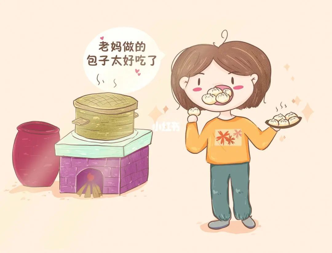 母亲做包子,多是用白菜做馅。工艺其实一点儿也不复杂:先选一棵大白菜,把外边的老帮子扒下来,切成丁,放点盐腌一会儿,用两只手使劲攥,把菜里的水挤出来。再切一点肥猪肉丁,放上葱姜末、五香面、酱油、花生油,用筷子搅拌,最后把白菜放入,荤素合成,搅拌成馅。包子皮要用发面,每个包子都要个大、皮薄、馅多。包好后先放在锅里醒一会儿,然后用大火蒸15分钟。出锅,稍凉,装盘,上桌,咬一口,白菜发脆,肉丁喷香,满嘴流油,真是过瘾!