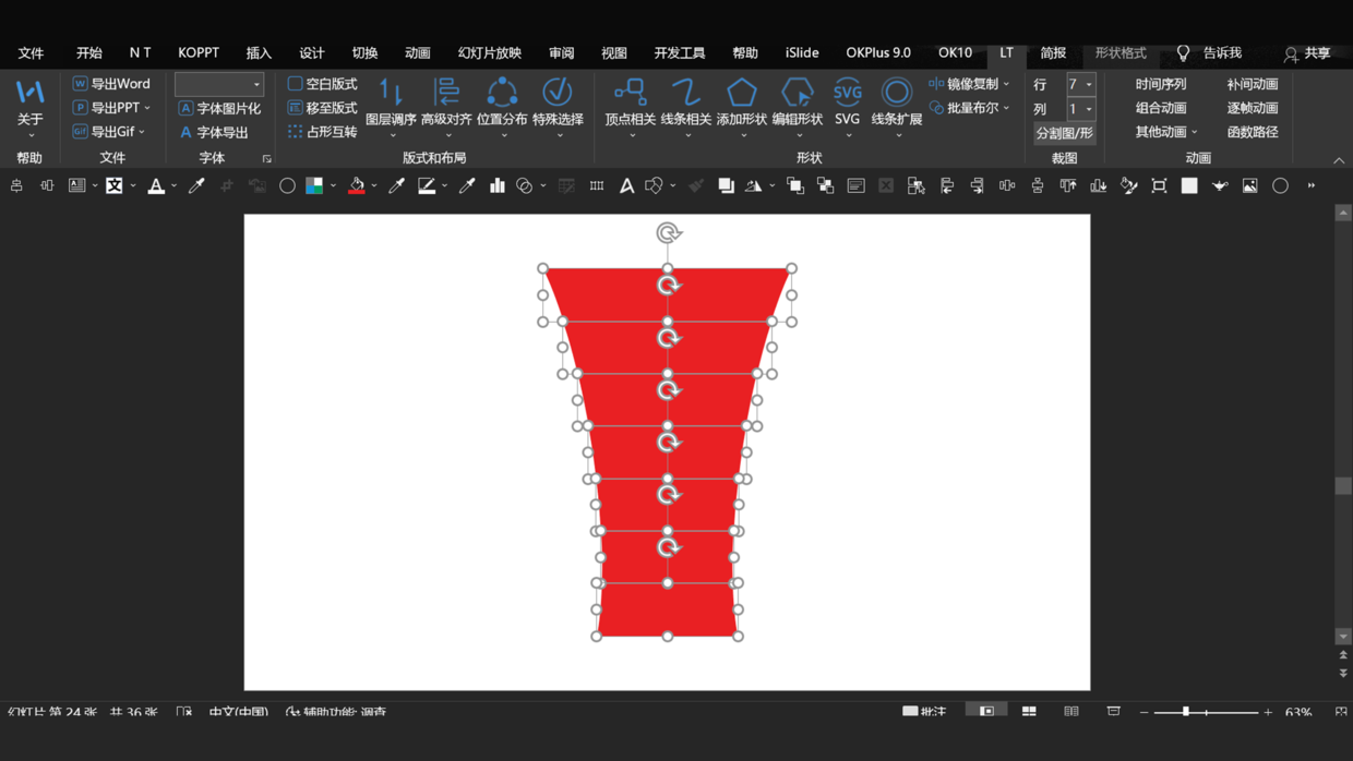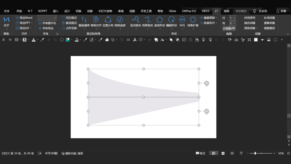 关于这种漏斗图的设计,其实很简单,就是用PPT基础元素设计。