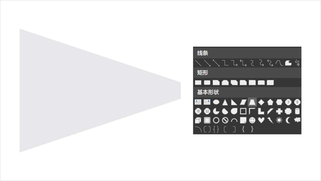 其实,也很简单,插入一个梯形,一定要插入基础形状中的【梯形】,可以调整手柄。