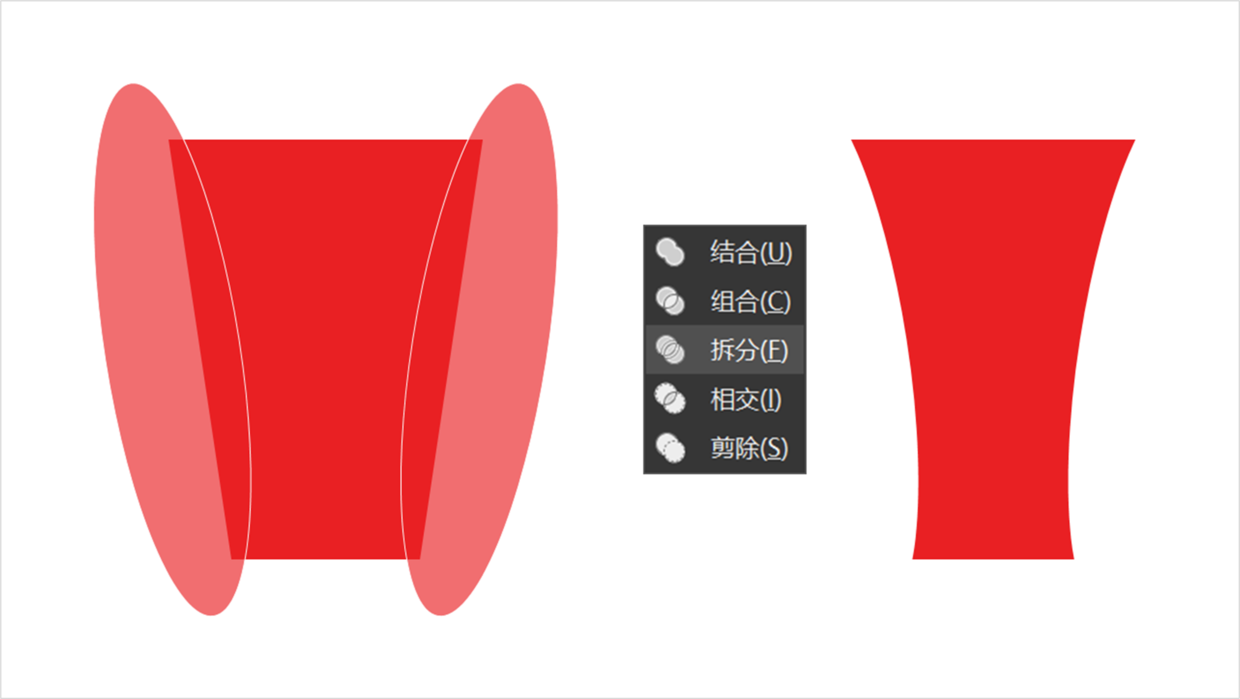 设计起来也简单,在梯形两边插入椭圆,并用拆分工具拆分。
