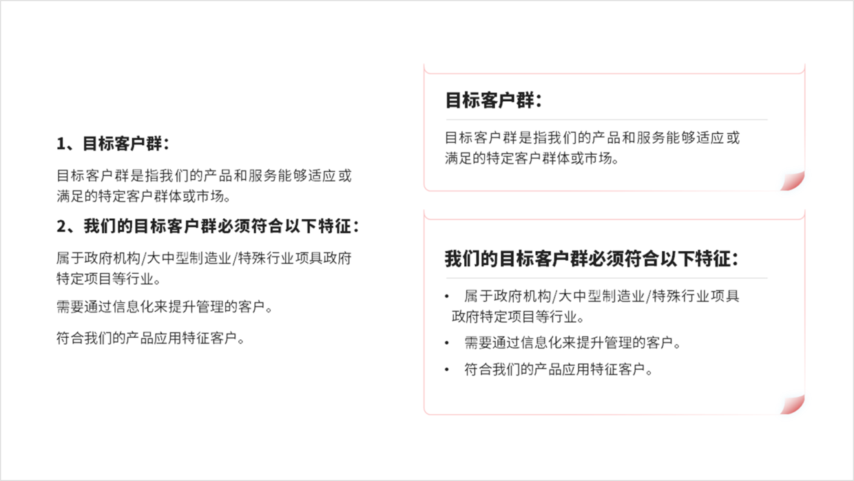对于这两组内容,比如可以用线框模块化处理。