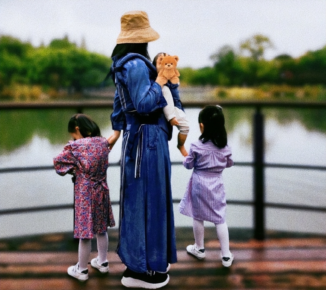 谢娜在生下二胎女儿后一直都没怎么晒过小妮子的萌态,而此番趁着母亲节,娜姐首次po出和三个女儿的合影,给足粉丝惊喜。下图里,谢娜戴着卡其色渔夫帽,身穿深蓝色长裙,脚踩运动鞋,她一边抱着二胎女儿小咘芽,一边还不忘照顾双胞胎女儿,是十足的好妈妈。而且已是三个孩子妈妈的娜姐状态很好呀,身材也恢复得相当不错,纤瘦苗条,完全不像是三个宝贝的辣妈。
