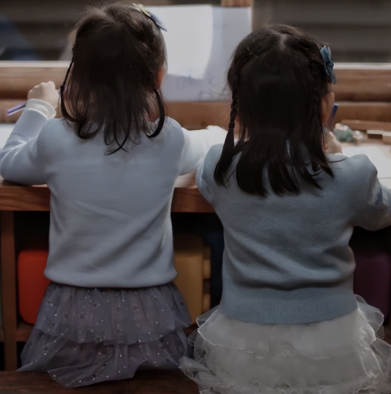 许久未出镜的跳跳和俏俏,此番入镜着实惊艳到大家了。因为刚满4岁不久的两个小妮子长高了好多,都已经蹿到妈妈的腰间了,个头很优越哦。两小只这次出镜打扮得非常漂亮,她们不似从前那般穿着姐妹装,而是分别穿着碎花裙和条纹裙,哪怕都只露出了背影,但依旧一个赛一个俏丽可人。