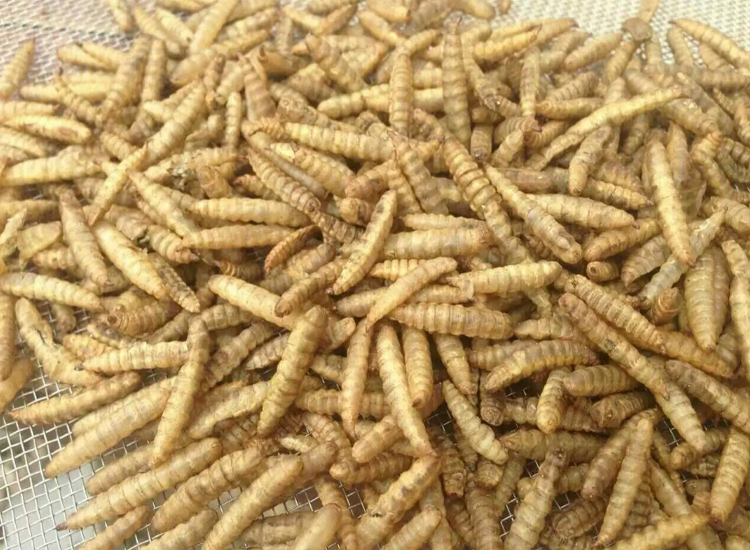 黑水虻虫干是指利用干燥加热等快速脱水烘干的方法,将黑水虻制成干体。黑水虻虫干是鼠类的饲料,可用于饲喂仓鼠、小白鼠等动物。另外,将黑水虻虫干粉碎后可以作为动物饲料的添加剂,饲喂包括猪、牛、羊等动物。将黑水虻烘干保存具有一定优势,这是因为活体黑水虻不易长时间保存,而将黑水虻制成虫干后保存延长至半年,便于包装、运输、销售或者进一步粉碎加工。 黑水虻幼虫干粉含粗蛋白 44%—48%,脂肪 34%-35%, 黑水虻的粗蛋白含量和鲜鱼,鱼粉及肉骨粉相近或略高。