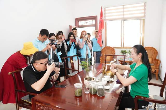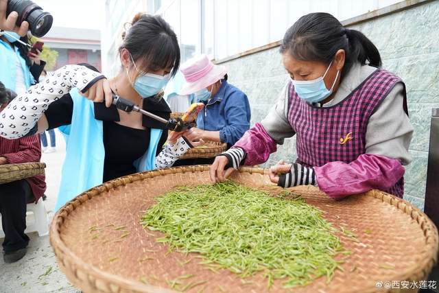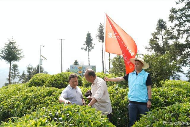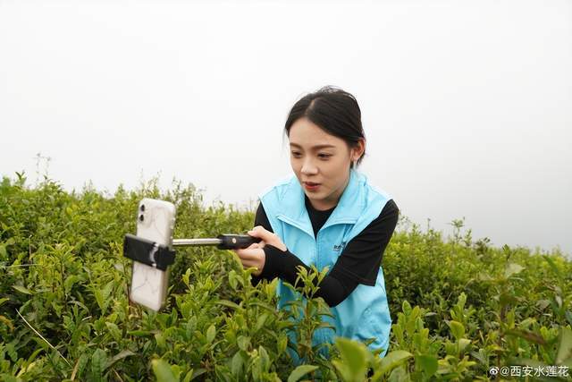 山坡上层层叠叠的茶树在微风中随风摇曳,茶芽翠绿,一片生机盎然。来自西安的自媒体、抖音网红达人走进茶园,用镜头、视频讲述着茶园的发展历程和高山云雾茶的品质,在茶厂详细了解茶农是如何对采摘的芽尖精挑细选确保茶叶质量。