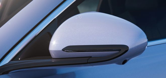 海豹的后视镜造型也同样延续了水滴的设计理念,后视镜上方带有“NFC”字样,表示新车标配了NFC智能手机车钥匙,用户可以享受刷手机解锁车门的便利。此外还可以看到,后视镜配备了360°环景影像的摄像头。后视镜上的转向指示灯与黑色钢琴漆装饰融为一体,并构成字母C的形态,与车灯设计形成呼应。