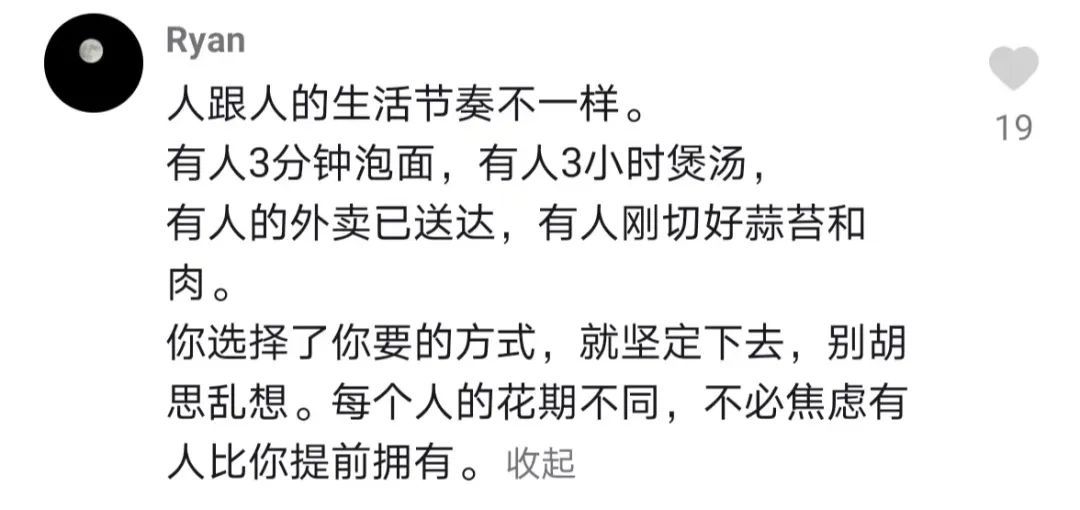 “人跟人的生活节奏不一样,每个人的花期不同,不必焦虑有人比你提前拥有。”