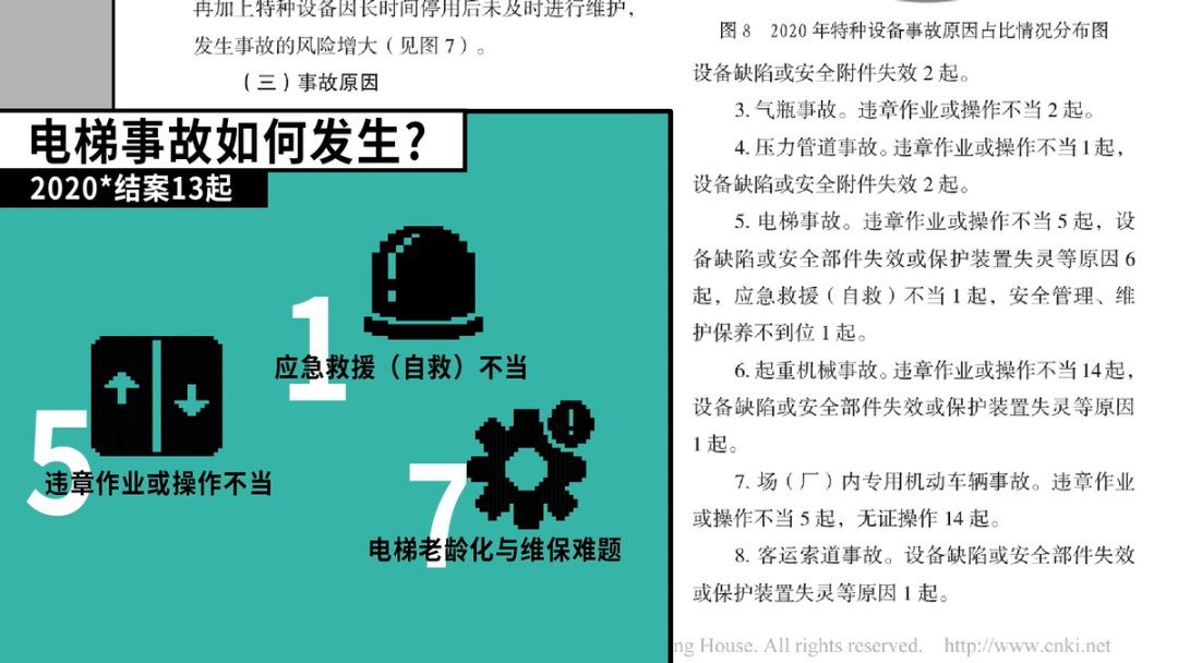 2020年,仅南京的电梯应急处置中心就处理了七千多起电梯困人故障,解救被困人员一万多人。