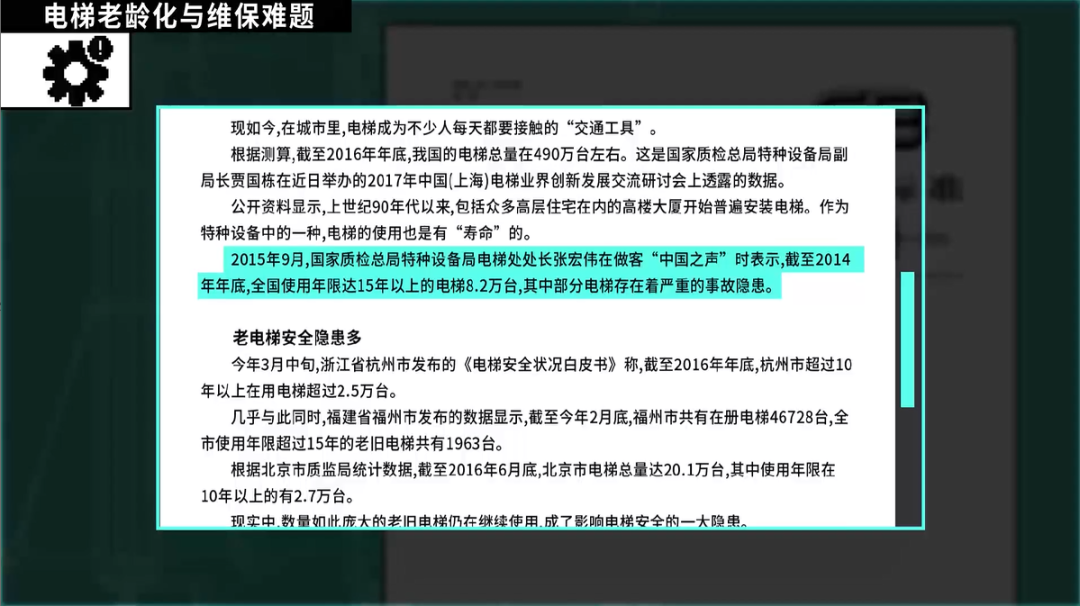 早在2015年,相关人员就曾表示,截至2014年年底,全国使用年限达15年以上的电梯8.2万台,存在着严重的事故隐患。