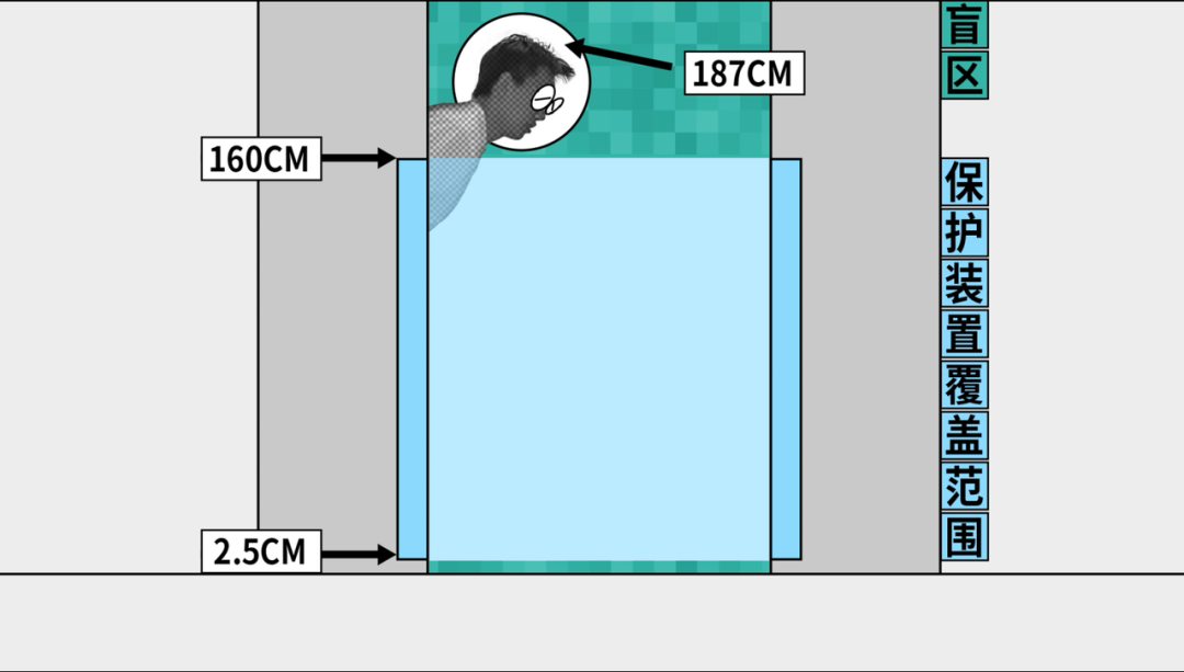 但是,保护系统安装时,往往只覆盖距离地面2.5厘米至160厘米左右的区域,如果你长太高,你的头可能就在盲区内。