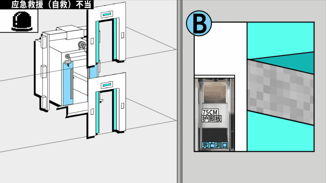 电梯事故的另一大类,是错误救援和自救 。盲目扒门,是最常见的情况。